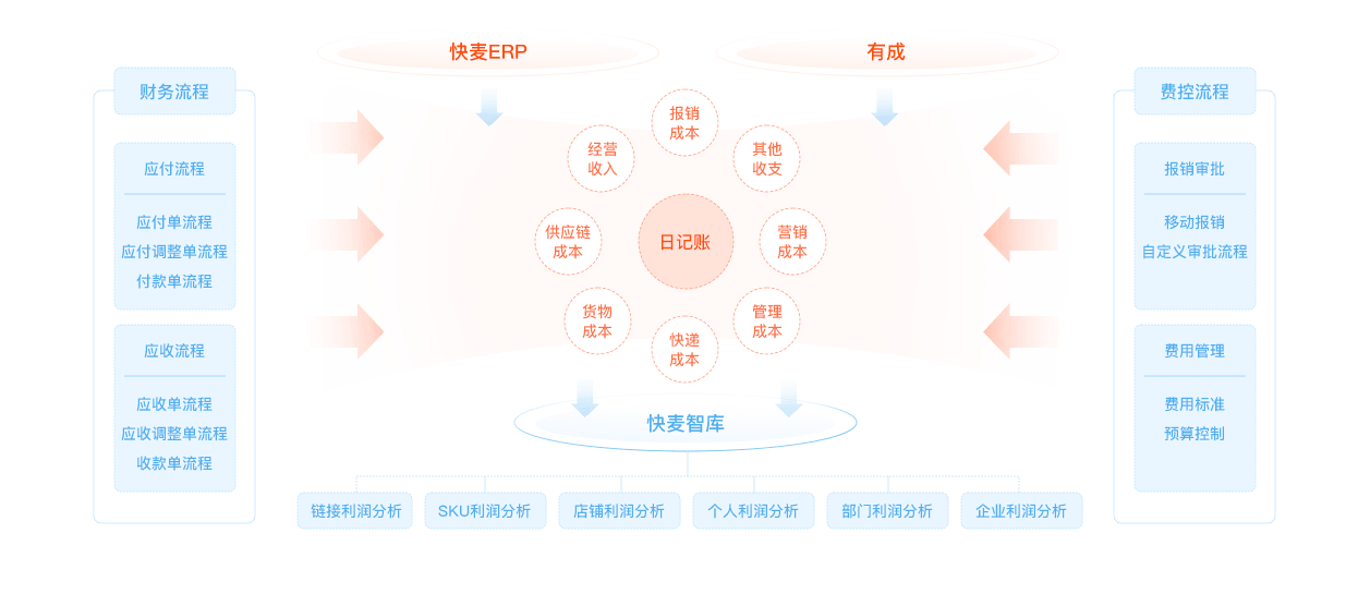 • 快麥ERP業財一體解決方案規范化,移動化,高效化